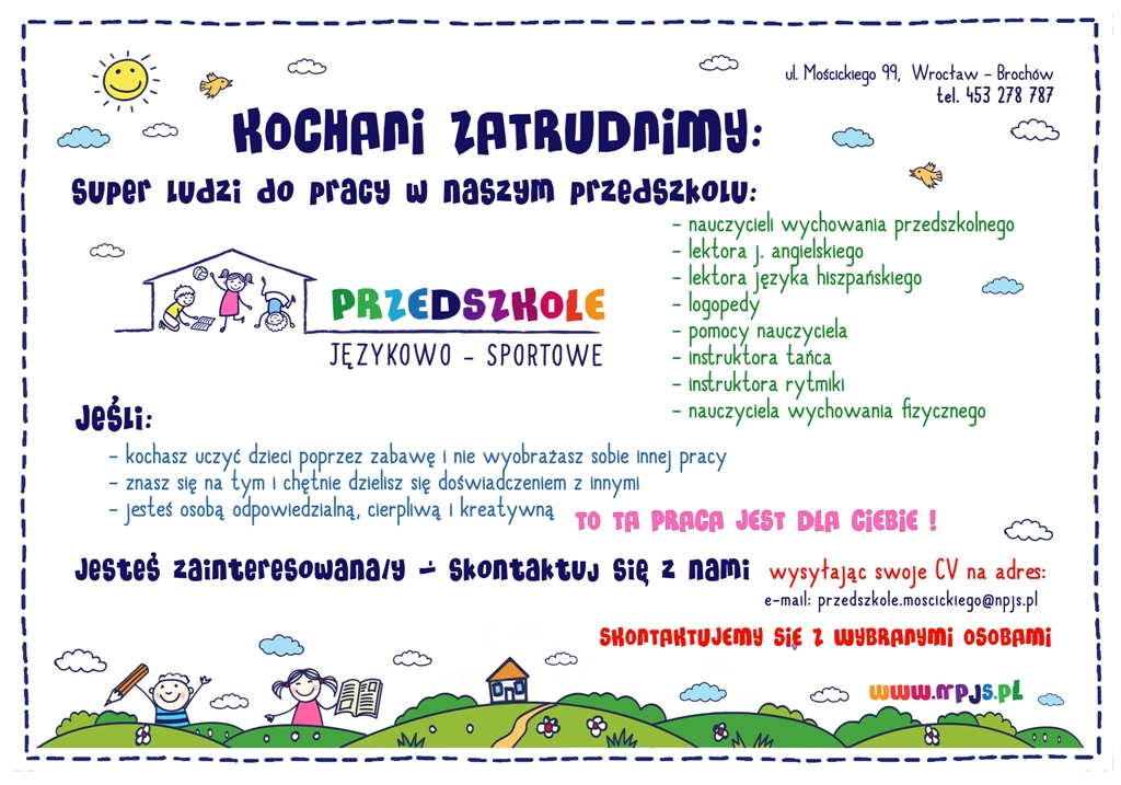 Poszukujemy super ludzi do pracy w naszym przedszkolu